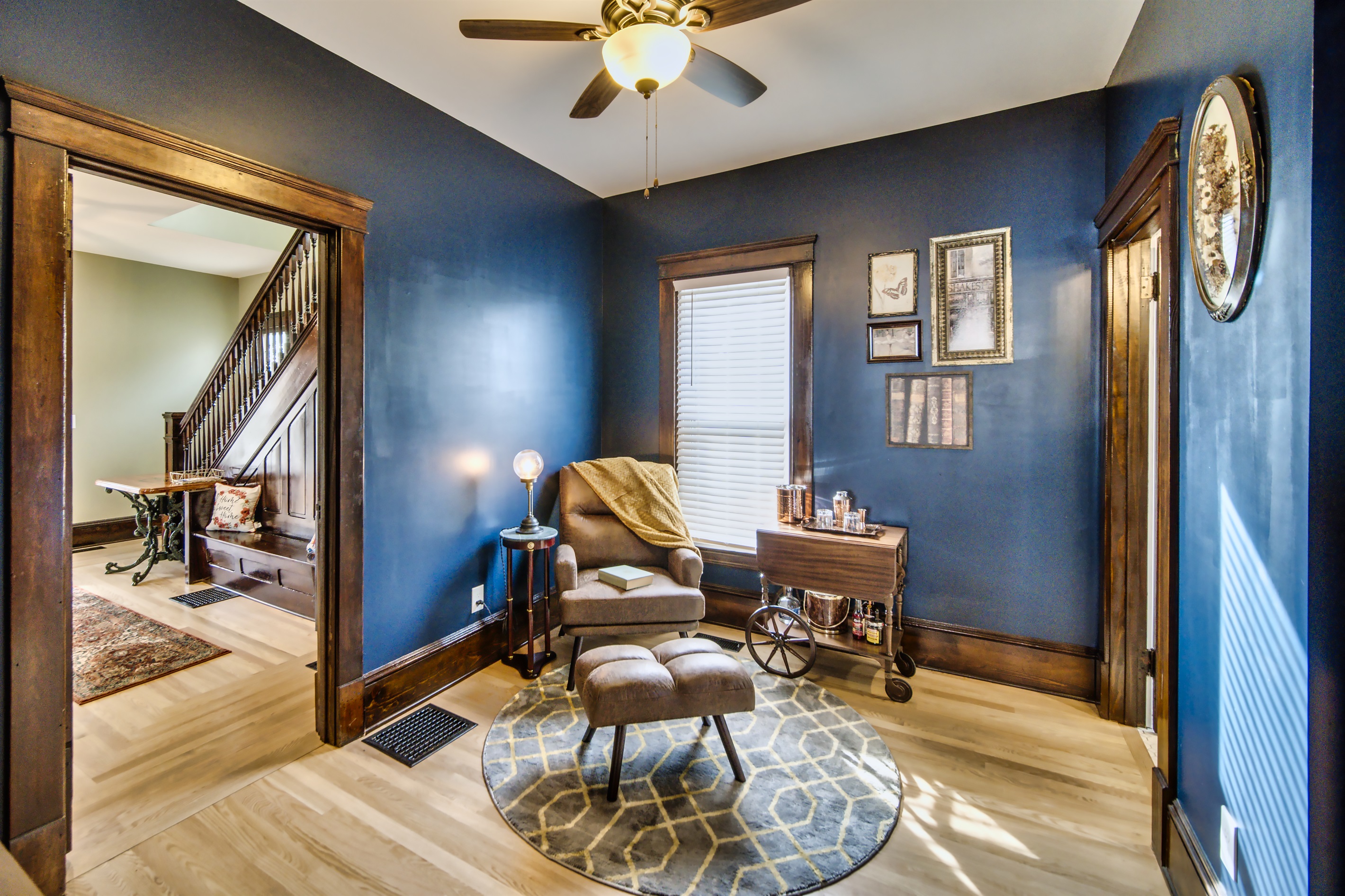 As you walk in, you will be transported to the cozy and quaint world of Stars Hollow. The living area is filled with comfortable furnishings, locally sourced antique décor, & one of a kind handmade furniture. All inspired by the age of the home and the show's characters to evoke whimsy & be transported back in time. Relax on the comfortable couches as you catch up on your favorite episodes or curl up with a good book in Richard's Nook in that cozy armchair.